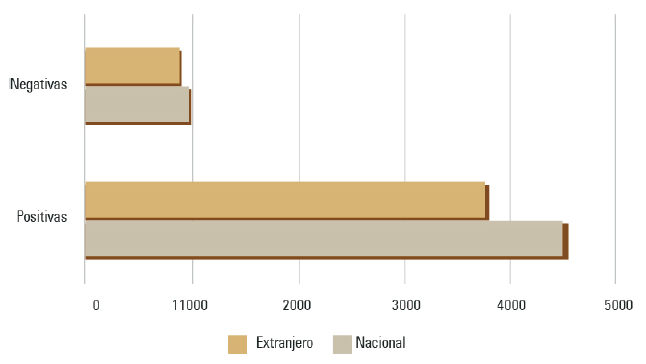 Por último, en lo que se refiere a resultados globales por variable, en la distribución de los participantes de acuerdo con su procedencia (nacional o extranjera) resulta interesante que el grupo nacional domina ligeramente la estadística (54 %), pero el grupo extranjero también está ampliamente representado (46 %). Lo anterior es fundamental para comprender los resultados que se presentan a continuación.