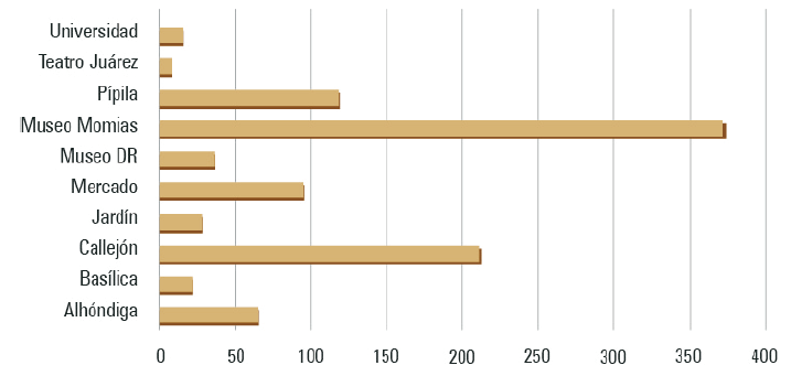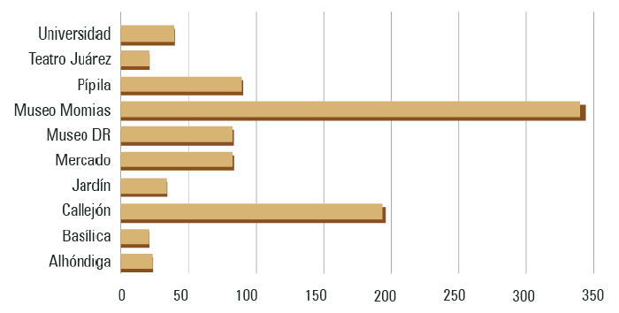 Por ello, se estudiaron las narrativas y temáticas que se refieren a aquellos atractivos que gozaron de mayor interés por parte de los viajeros y usuarios de esta plataforma, registrando una cantidad considerable de reseñas (por lo menos más de 500). A partir de la revisión del contenido de las OOV sobre estos atractivos, se identificaron aspectos positivos y negativos percibidos por los visitantes en estos espacios, así como las temáticas dominantes al reflexionar, comunicar y evaluar su experiencia. Se piensa que esta información es bastante útil no solo para conocer las percepciones reales de los viajeros a la ciudad de Guanajuato, sino también para identificar y proponer áreas de mejora dentro de la gestión turística de estos atractivos.