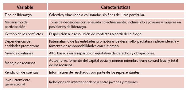 La asociatividad local se define por las relaciones institucionales y empresariales dentro del territorio, cuyas variables sean capaces de fomentar el capital social, entendido este como la suma de normas y valores compartidos que estimulen la cooperación (Montero y Calderón, 2019). Se constituye como una alternativa socio-empresarial que permite desarrollar las capacidades de confianza y cohesión entre sus integrantes; asimismo, permite organizar los mercados económicos y fomentar las economías de escalas para los micro y pequeños productores rurales (Sanabria y Salgado, 2023; Vargas, 2023). Aunque este concepto está delimitado por las singularidades de cada territorio, existen ciertas características que pueden distinguir las experiencias de la nueva asociatividad, de acuerdo con los nuevos modelos de desarrollo local, mismas que se pueden evidenciar en la tabla 1.