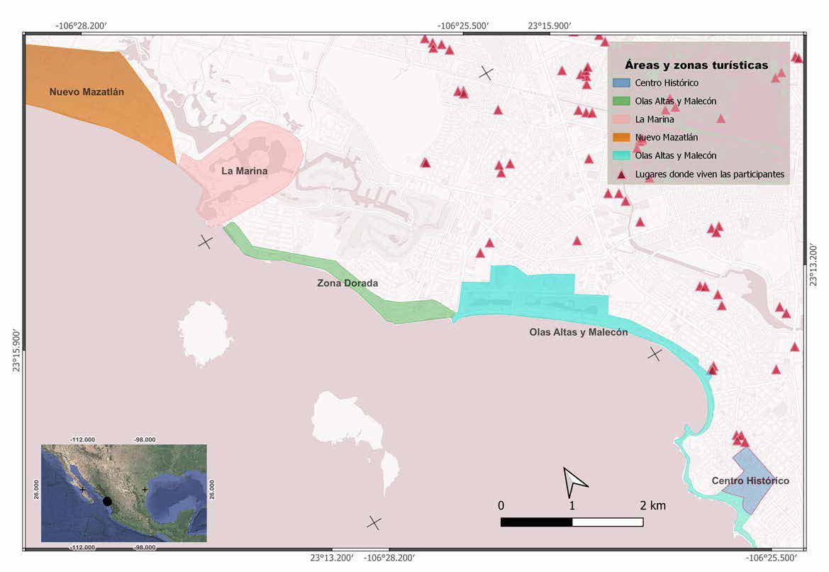 Mazatlán es un municipio costero del Pacífico mexicano, ubicado al sur del estado de Sinaloa. Esta ciudad es conocida como la “Perla del Pacífico” y es uno de los principales destinos turísticos de sol y playa en el país. El turismo es una de las principales actividades económicas después de la pesca; 51% de la población trabaja en empresas y organizaciones de giro turístico. Concentra 9 mil 668 cuartos, el porcentaje promedio de ocupación anual fue aproximadamente del 58.1% durante el año 2022 (Codesin, 2022). En los últimos registros de turistas que visitaron las principales playas, a Mazatlán llegaron aproximadamente 3 millones 832 mil 371 mil turistas, lo que representa 73.5% del total de turistas que arriban al estado de Sinaloa y 14.0% de los que llegan a nivel nacional, ocupando el tercer lugar a nivel nacional (Codesin, 2022). Los turistas permanecen en el destino aproximadamente 2.7 días promedio, en comparación con los 6.4 días de estancia promedio de los turistas en destinos como Cancún (McCoy, 2017).