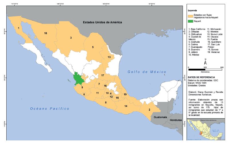 Figura 5. Entidades de la República mexicana expulsoras de población hacia Bahía de Banderas, Nayarit