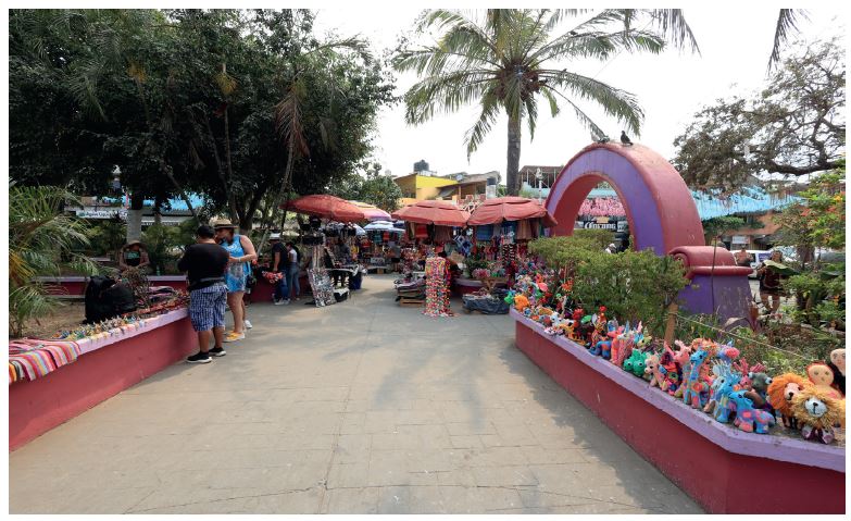Figura 7. Inmigrante vendiendo artesanías a turistas en la plaza principal