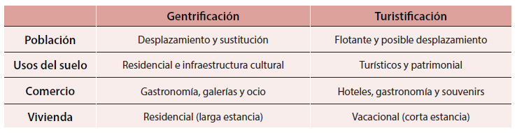 Tabla 1. Diferencias entre gentrificación y turistificación
