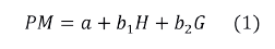 Donde PM es la variable dicotómica que acepta dos valores: 1, si la localidad ha sido nombrada PM y 0 si no lo ha sido. H es indicador de la incidencia de la pobreza, es decir, la proporción de personas pobres (totales, extremos o moderados) en la población de la localidad, mientras que G es el índice de Gini del municipio. Por su parte, a, b1 y b2 son los parámetros de la ecuación.