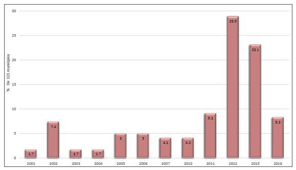 es la incidencia que ese municipio registró en 2015 y