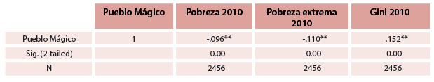 Tabla 2. PM: índice de correlación de Pearson con la pobreza y la desigualdad