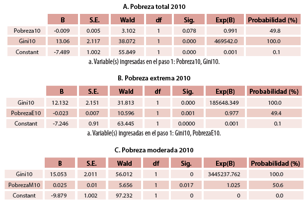 a. Variable(s) ingresadas en el paso 1: Gini10, PobrezaM10.