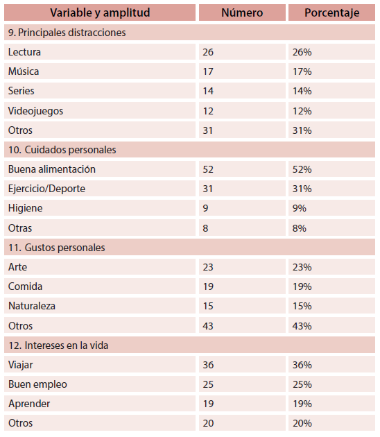 El instrumento consistió en un cuestionario formado en su mayoría por preguntas cerradas y algunas abiertas, para recolectar los valores de las 15 variables (tabla 1), y 12 de perfil demográfico (año de nacimiento, género, situación de empleo, conocimientos informáticos, idiomas) y psicográfico (motivación, habilidades, autopercepción, principales distracciones, cuidados personales, gustos personales e intereses).