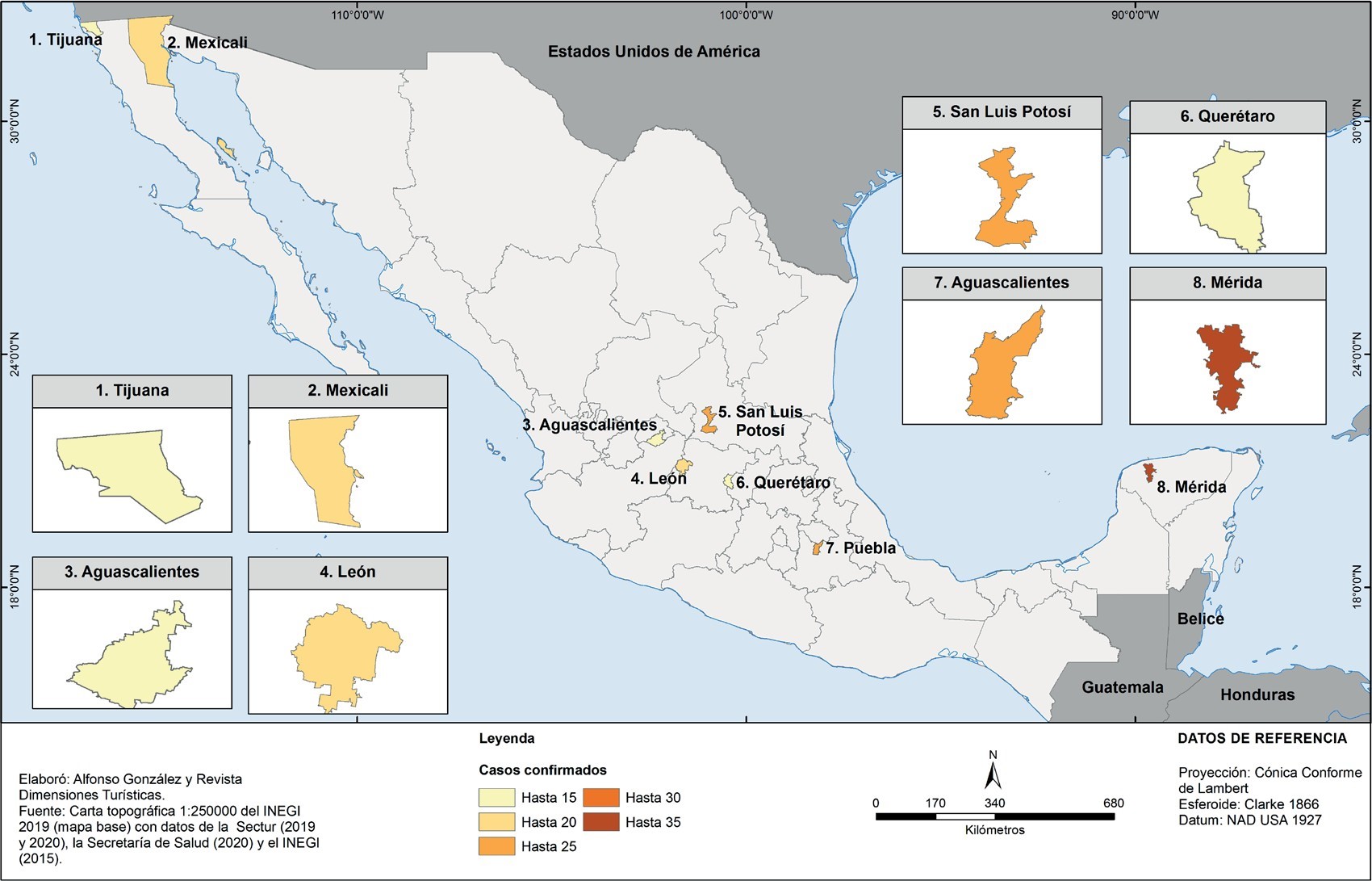 Figura 1. Casos confirmados al final de la Fase 3 en municipios turísticos seleccionados de México