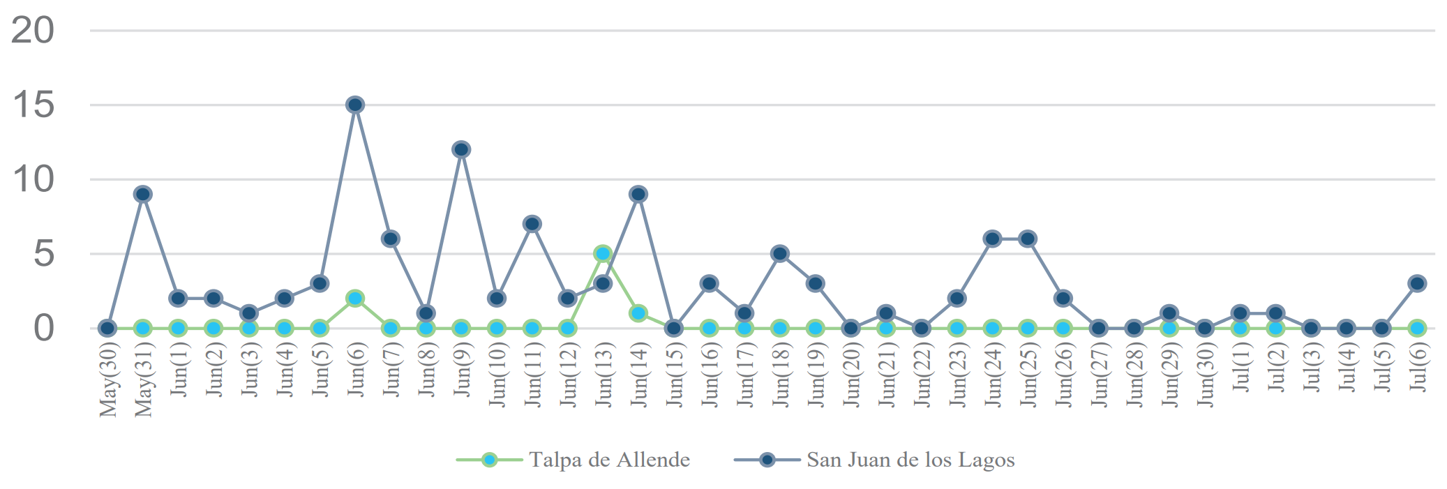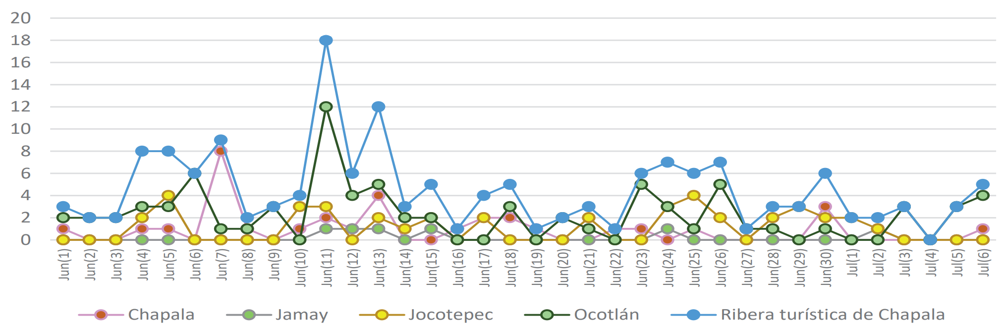 Nota: En esta gráfica no se incluye Mazamitla, por no presentar casos.