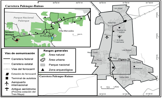 Figura 2b. Cabecera municipal de Palenque: La Cañada y Avenida Juárez-Parque Central