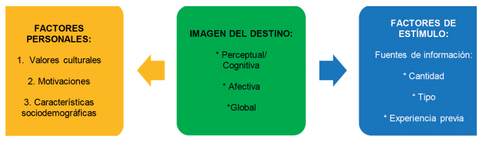 Además de los componentes cognitivo y afectivo que participan dentro de la formación de la imagen turística, también se encuentran otros factores como los personales y estimulantes: