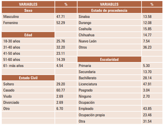 a) Variables sociodemográficas, tales como género, edad, estado civil, estado de procedencia, escolaridad y ocupación laboral.