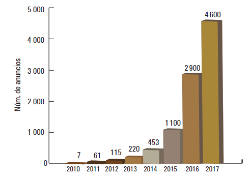 Figura 1. Evolución de la cantidad de anuncios en Cancún entre 2010-2017 (mayo)