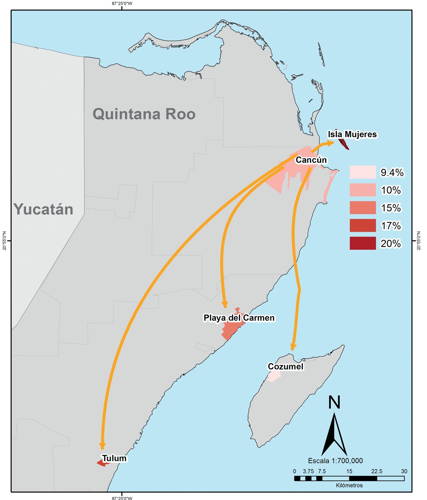 Sosa, P., Martínez, C., Moncada, P. Beltrán, M. y Álvarez, V. (2015). Visitas de familiares y amigos en Cancún: impactos en una comunidad en construcción. En M. Nel-lo, B. Campos y A. P. Sosa. Temas pendientes y nuevas oportunidades en turismo y cooperación al desarrollo (pp. 156-165). Tarragona: Universidad Rovira Virgil/Universidad de Quintana Roo/Universidad del Caribe.